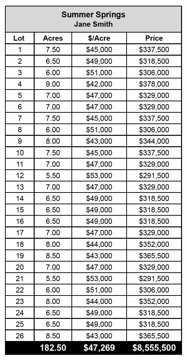 Significant variables including, but not limited to, market conditions, lot location, features, and development amenities.