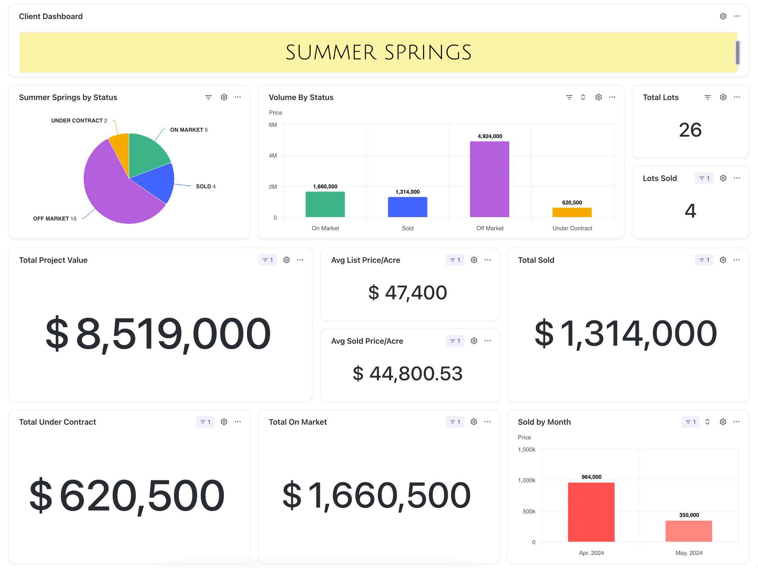 We’ve created a marketing and sales plan specific to new developments and have a vast array of materials and resources that are fully customizable for any size and type of project We also understand that as a developer, numbers are one of the most important factors of your project - if not THE most important. Knowing that, we’ve implemented a detailed, revenue-focused client dashboard for real-time snapshots so you have a crystal-clear view of your progress every step of the way