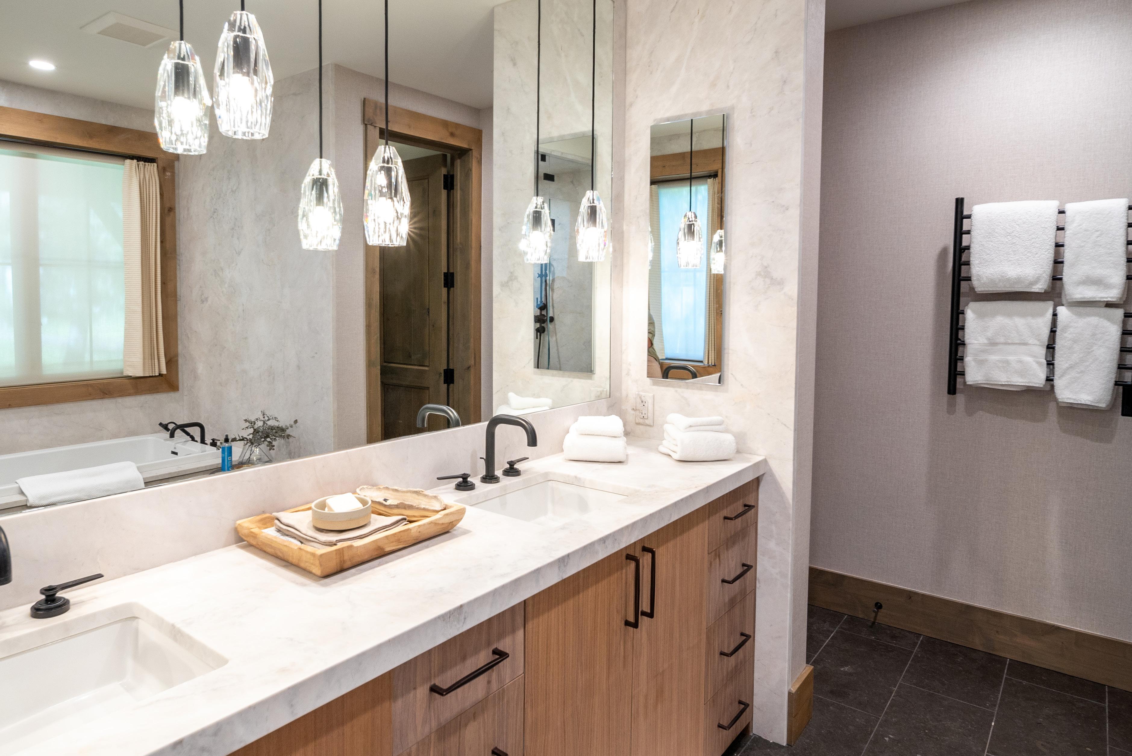 Retreat to the luxurious master suite, which features a spa-like ensuite bathroom outfitted with custom-designed plumbing fixtures by Samuel Heath and a Toto Neorest toilet, ensuring both style and functionality. Each additional bedroom offers ample space and unique finishes, ensuring comfort and sophistication for family and guests alike.