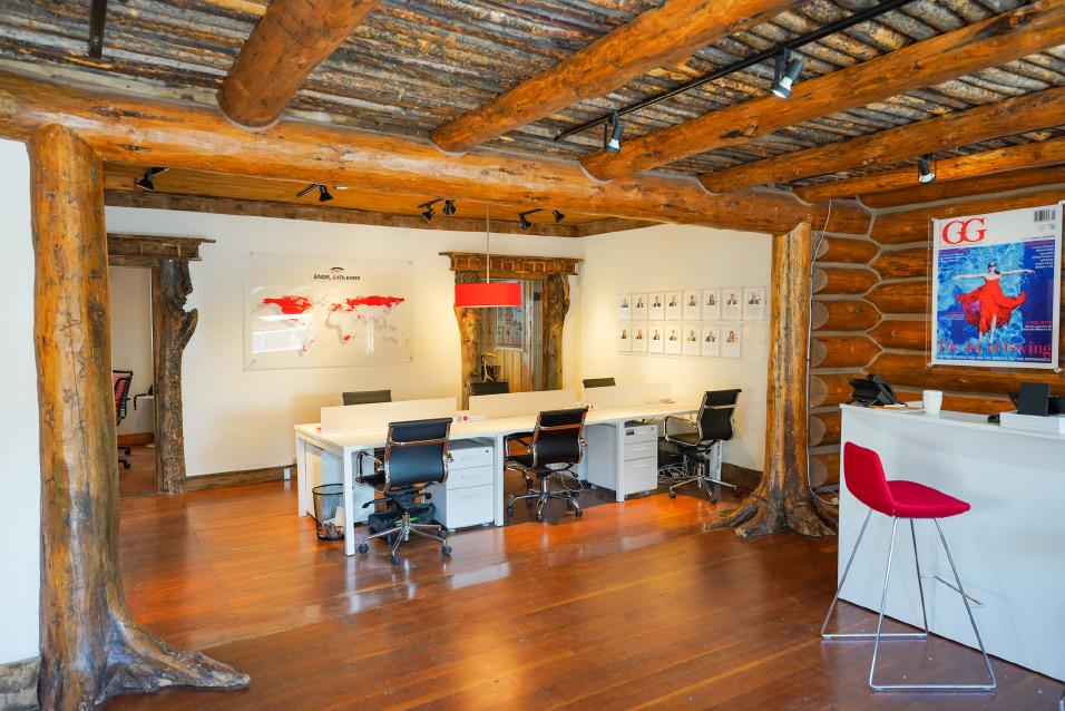 Large windows boast beautiful property exposés displayed like fine jewelry, showcasing properties locally and around the world.