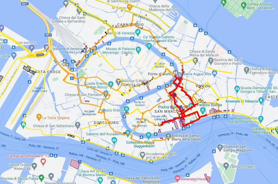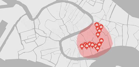 Venice has been ranked in second place (preceded only by Florence) among the 50 most suitable destinations for a walking tourism* in the world - considering that the main attractions are all very close together. Its par ticular and unique conformation in fact, based almost exclusively on pedestrian flows, allows the city to be experienced from a commercial point of view as a single big commercial center, in which each “calle” welcomes a succession of shops and showcases that host various product categories. In the following pages we will analyze the main shopping streets, the so-called “High Streets”, i.e. the routes with the greatest presence of com mercial activities and with the most intense “Footfalls”: