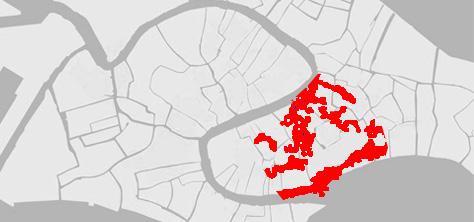 Gli immobili accatastati come ufficio localizzati in queste zone, che rappresentano il vero cuore commerciale ed operativo di Venezia, possono raggiungere un prezzo di compravendita pari a 7,800 €/m2 e di 29 €/m2 in locazione.
