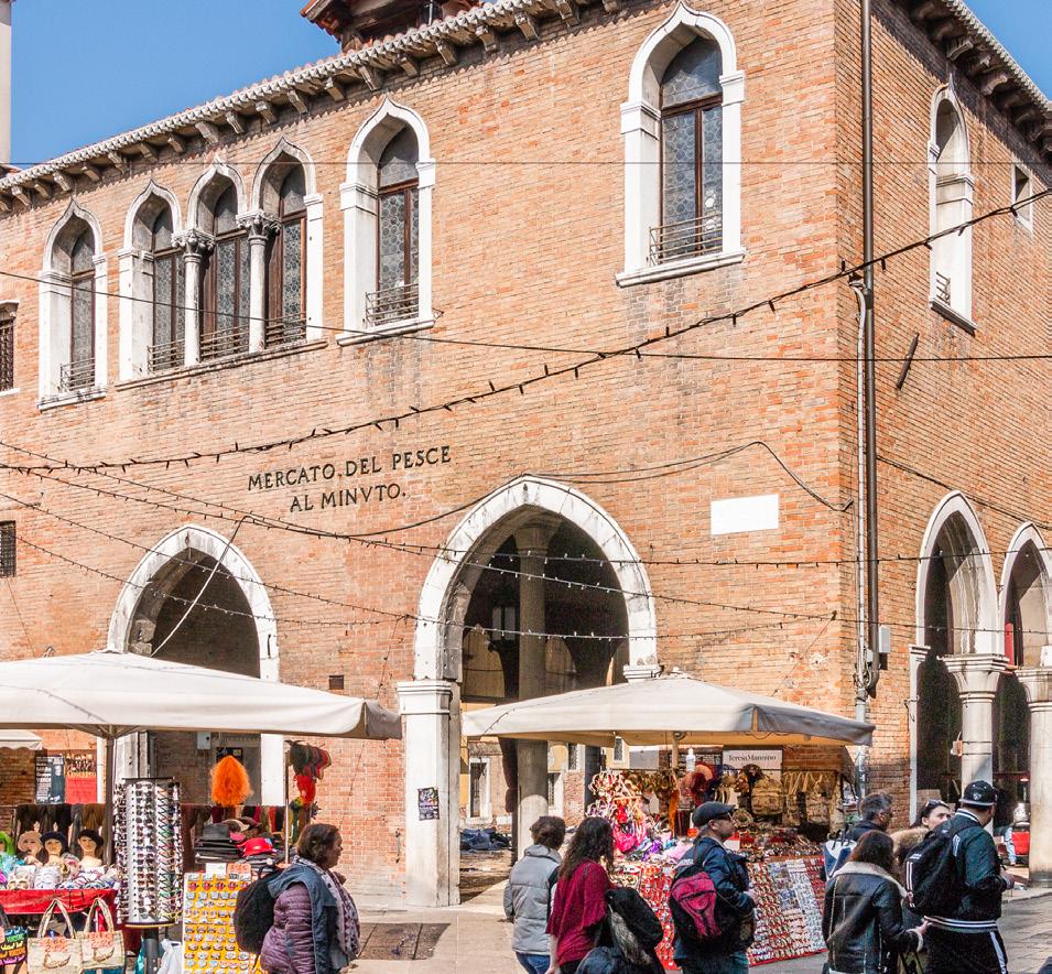 Il Mercato di Rialto è uno dei più antichi d’Italia. Diviso fra la Loggia della Pescheria e il Campo de l’Erbaria (Piazza delle Erbe), è ancora oggi un luogo imprescindibile per il viaggiatore e il cuore pulsante di un quartiere, Rialto, originariamente Rivo Alto, tra i più antichi della città. Il mercato di Rialto è un tripudio di suoni, colori e profumi della venezianità più genuina. In quest’area troviamo sicuramente un tipo di shopping più “mattiniero”, in cui negozi di artigianato, abbigliamento e calzature locale si fondono con i vivaci mercati di pesce, frutta e verdura.