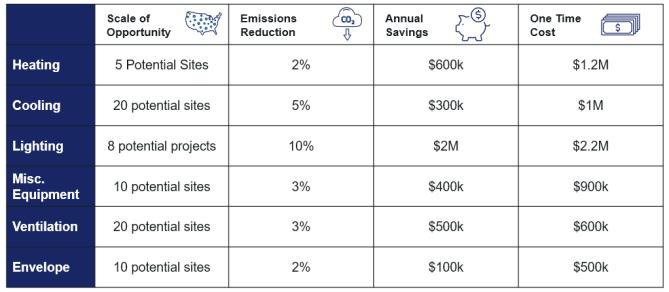 • Recommended project prioritization and capital planning based on individual building’s target