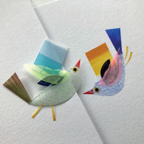 Collage Birds by Jessica Thomas Jessica captures her love of wildlife from the garden to the sea, using a diverse range of techniques including paper cut, collage and lino cut. Her intimate artwork studies display an interest in the use of shape, pattern, texture and colour. These delicate bird collages are a pop of colour and cheer to your walls! The collection includes ‘Fly High’ ‘Swoop’ ‘Glide’ and ‘Loop The Loop’. Small artworks with big impact especially when displayed in pairs or as a whole collection. Colours can be made bespoke to the customer. Her online shop has a beautiful range of work featuring greetings cards, small gifts, prints and original artwork. Please contact her for any queries and commissions.
