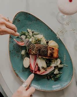 Just along the quay, Argoe delivers firecooked seafood with depth and simplicity. Fish is grilled over charcoal, paired with ferments and wild herbs. It’s food with backbone. In St Ives, Porthminster Café rises above the beach, delivering Asian-inflected dishes like coconut fish curry or tamarindglazed mackerel, all with an unbeatable sea view. Over on Porthmeor Beach, the café of the same name does casual better than most – coffee at sunrise, small plates at sunset, surfers in between.