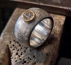 The workshop specialises in bespoke commission work, working closely with customers to craft jewellery that is personal and made to last. Whether reworking inherited pieces or creating a meaningful design from scratch, the process is collaborative and relies upon consultation and feedback. Even details like sand from a meaningful beach can be pressed into the metal, creating a permanent link to a specific time or place.
