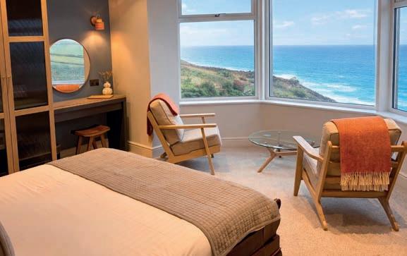 Interiors flow from reception to lounges, bars and event spaces, creating a sense of continuity often missing in other hotels. Dining is led by Brasserie on the Bay, overseen by local chef Dave Waters, where seasonal Cornish produce and sustainably sourced seafood dominate, alongside the more informal, seafacing Nourish café-restaurant.Beyond the main building lie self-catering apartments and extensive additional leisure facilities, including a 70-metre indoor pool. The overall impression is of an understated, carefully layered resort that offers far more than it initially suggests. Turn to page 21 for St Michaels Resort’s self-catering offering. www.stmichaelsresort.com
