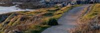 n The start of a woodland walk, designed to draw the clients out into their garden