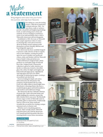 4 Stennack Road, St Austell PL25 3JQ 01726 65434 www.tileworldcornwall.co.uk Find out more online: www.cornwall-living.co.uk