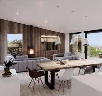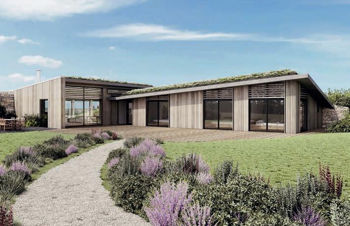 set in an elevated position overlooking a chic Italian-themed courtyard. In 2025, these will be joined by a uni ue selection of new two, three, and four-bed eco-lodges; each individually dotted within a wild meadow setting at Tevi Field. Featuring air-sourced heat pumps, jacuzzi hot tubs, hand-built outdoor kitchens and cedar pergolas, these beautiful lodges – each sold fully furnished –embrace their natural environment setting, framed by wildflower roofs and gardens.