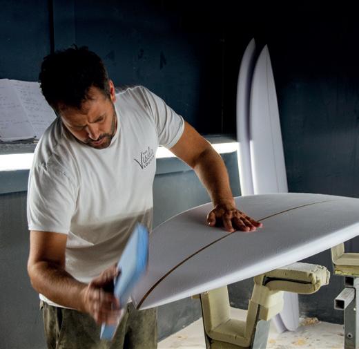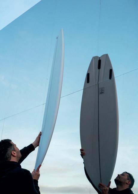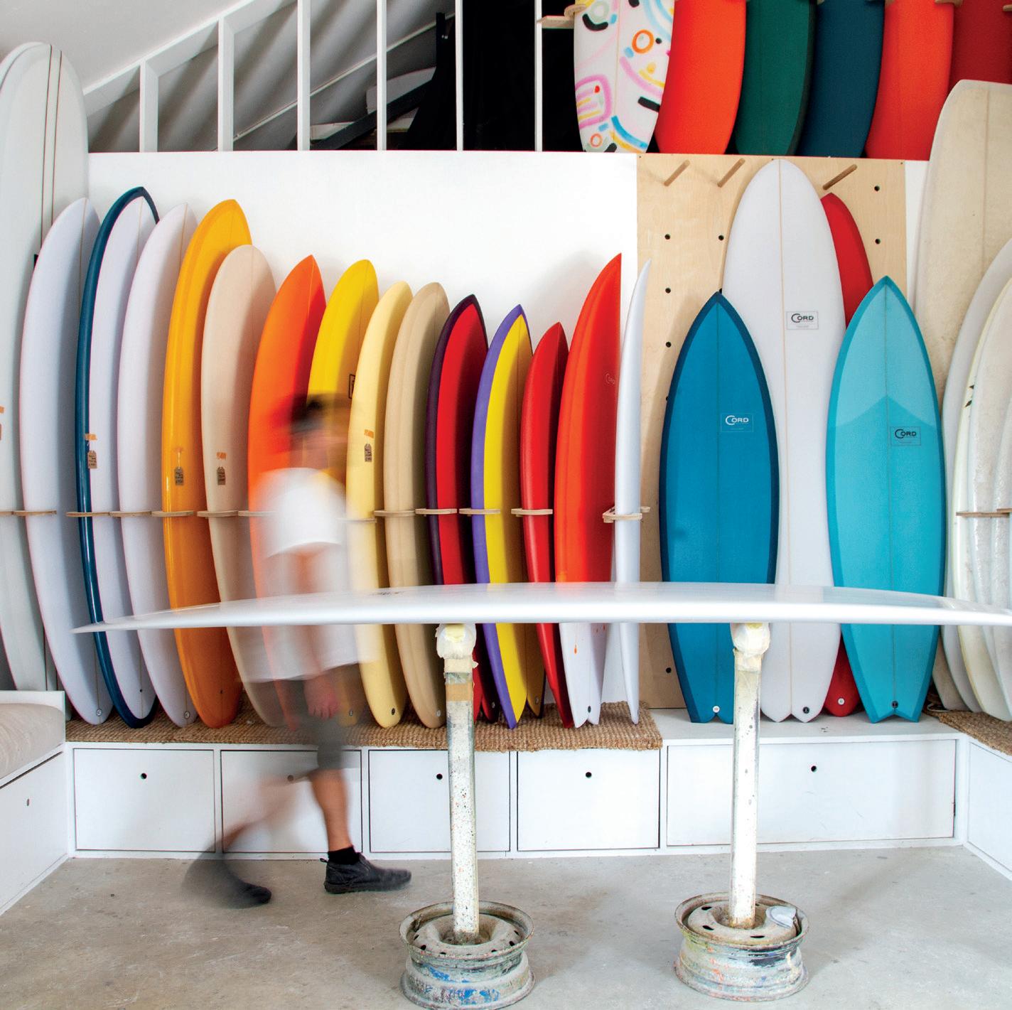 foil of each surfboard, ready for the shaper to fine tune, template and shape the allimportant tail end, and fine sand.” Markie explains. “It basically takes away a load of the time and less-skilled labour roughing out the surfboard from the foam blank, and it’s so, so, accurate.” Having spent the last few years nursing the old machine along whilst trying to keep up with demand, Markie decided it was time to invest and update. The new machine is one of the most advanced in Europe, keeping Cord Surfboards at the absolute top of the game and matching the machine to the calibre of the craftsmen who built upon those foam foundations.