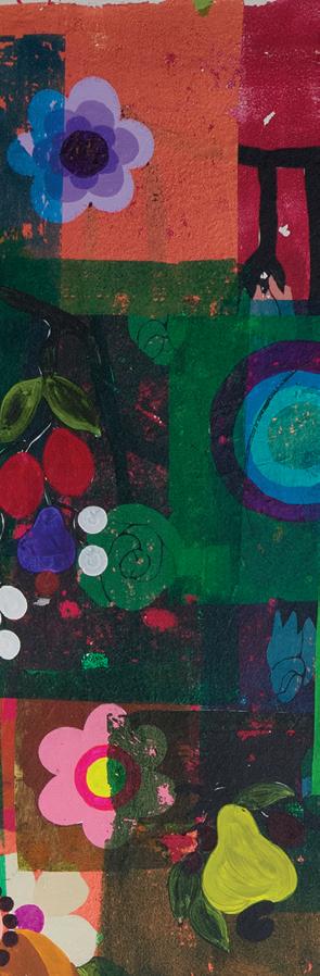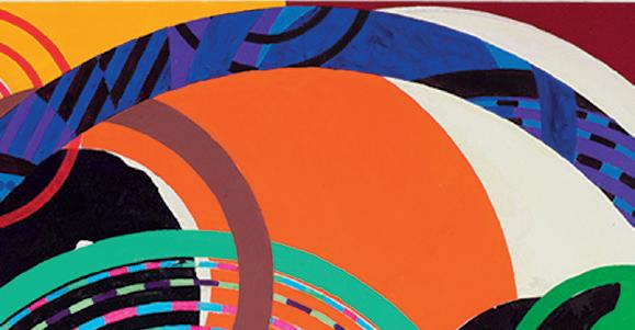 beach neighbourhood in Rio. The name also belongs to a small Mediterranean wildflower. Both associations can be imagined fitting retrospectively the painting to which she gave the same name (2002-3). The picture revels in decorative patterning; its free chromatic geometry generates a dreamy effect in the mind’s eye. Starbursts of colour and line erupt at multiple intervals in ever-advancing layers.