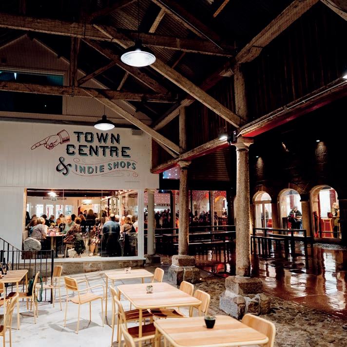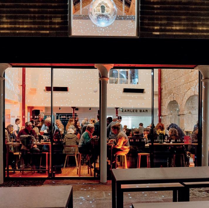 kitchens, the architects created a central glass atrium that spans the far end of the courtyard. Its clever design means that it doesn’t detract from the building’s history yet provides a modern space for sampling the ho t o oodie de ight on o er he Butter ar et ha it own o ee ounter ourte o o e n, er ing rigin o ee roa ted in orth e en and ar e Bar na ed a er a bu ine on e on the ite , where ou an en o ra erdant beer brewed in enr n, fine wine or a uir cocktail. There are four resident kitchens: Bango Kitchen, whose Asian street food is revered county-wide; Cowgirls serving grass-fed, retired dairy bee ro the fie d of nearby Stithians; Caths Cornish Kitchen for buttery pastry and pies; and Little Ears whose small-batch homemade pasta and sauces brings a taste of Italy to the Buttermarket. There are also smaller kitchens available to rent as popups – on the day of my visit the aromatic smells emanating from The Jar’s Indian and Sri Lankan-style street food and Harry’s Mercado tacos are simply heavenly.