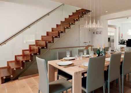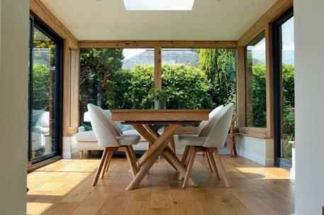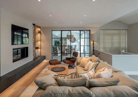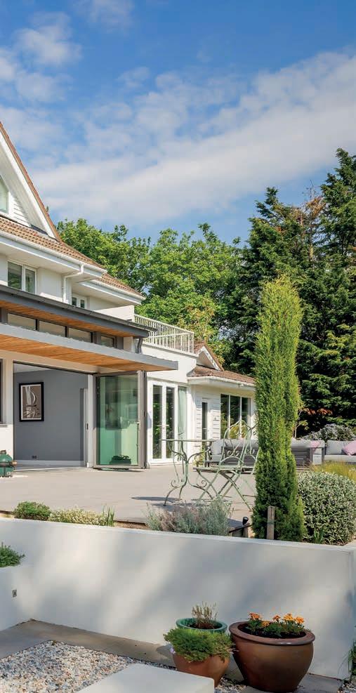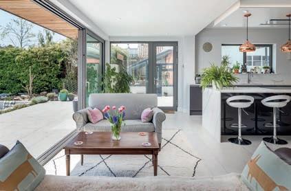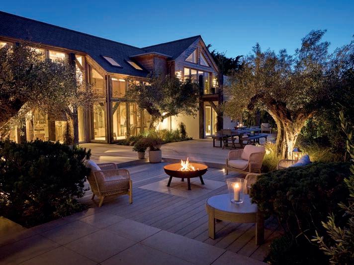 durable materials that age well and cra ing spaces that stand the test of time. Their emphasis on sourcing locally not only reduces carbon emissions but also deepens the connection between home and landscape. This sensibility extends to their work in outdoor living. Whether designing pools, terraces, or garden-facing rooms, priority is placed upon comfort, durability and cohesion with the wider environment. Natural light, resilient fabrics and climateappropriate planting schemes are key, with lighting used to extend usability into the evening. Their preference for architectural extensions over conservatories stems from a belief in building quality spaces that truly belong to the house, places to be lived in.