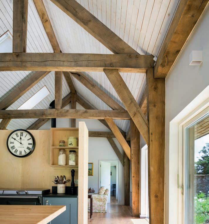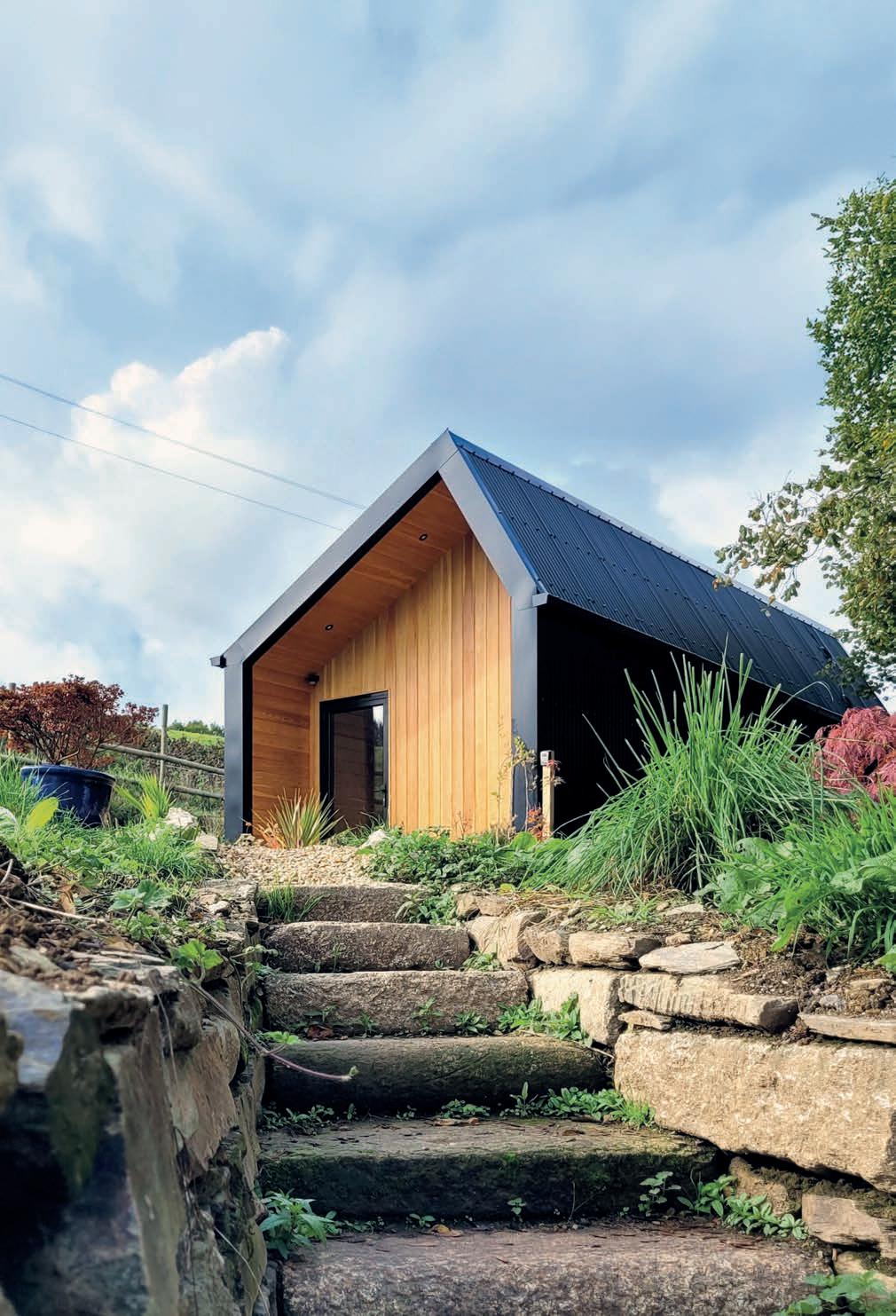 Husk Construction has grown slowly, deliberately. “We didn’t rush it,” Charlotte says. “When we moved back to the UK, Joe started out as a jobbing carpenter in 2019. We took on projects that made sense for us and for the people we were building for.” In the early years, those pro ects were o en small garden structures, outbuildings and timber frames for extensions. But what set them