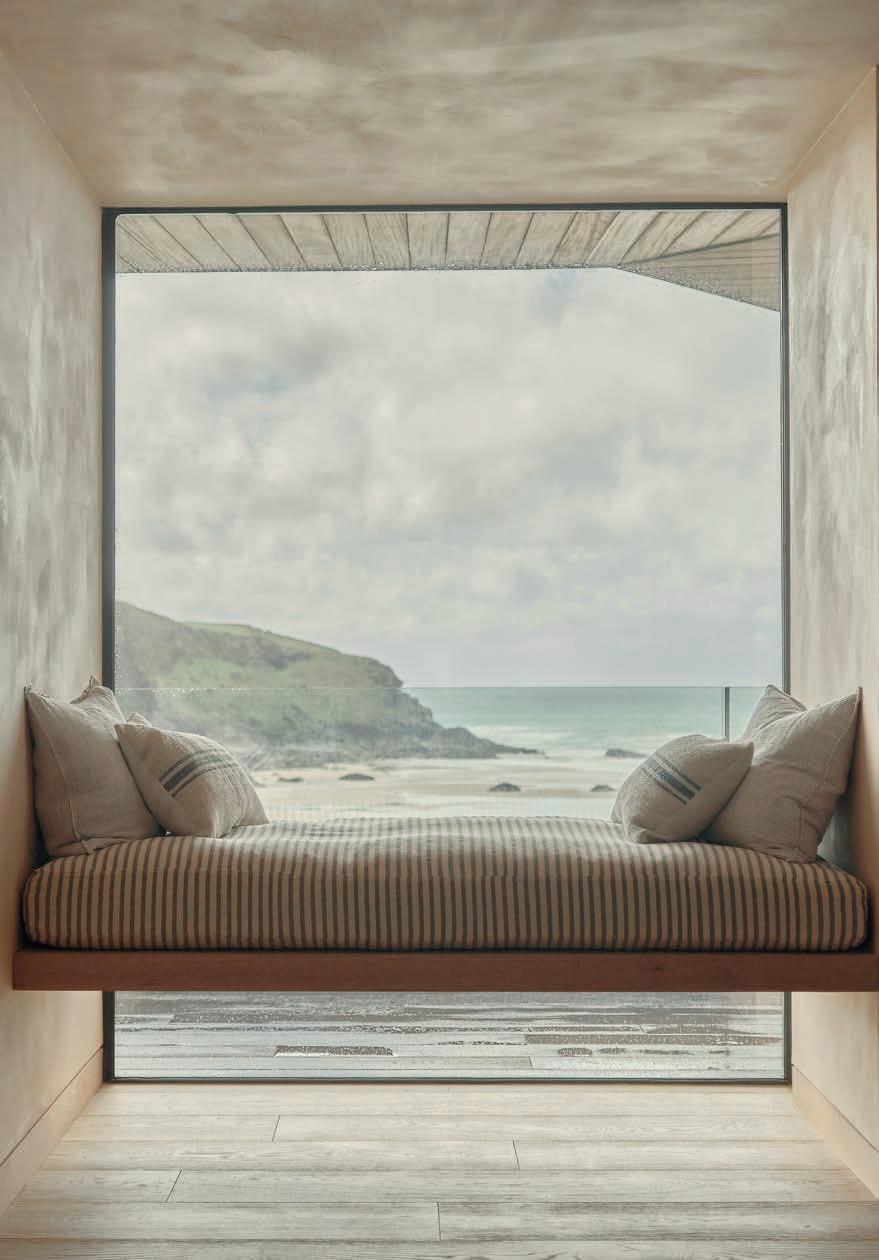 of episodes that make up a whole story. When you open the front door the first chapter is the view, and then the second is the materiality and then the way that the spaces flow together. We wanted to create a progression through the house that was as visually exciting as possible. However, ultimately the way the drama and excitement are created are by the views of the hillside, the views of the sea, the views of Cornwall. That’s the main story. And then within the chapters, there are smaller paragraphs – the practicalities of pantries and boot-rooms, the twisting staircase, the window seat that you can prop yourself on while looking out to sea… paragraphs and chapters are all essential parts of a good story.