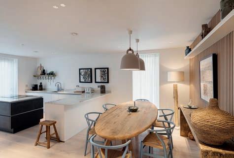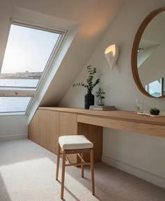 West-based artisans shaped much of the interior from the so furnishings cra ed in Devon, to the bespoke joinery and bathrooms. Even the artworks and lighting were regionally sourced, rooting the home in its Cornish context while elevating it beyond the familiar.