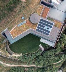 Recessive, for me, is a house that doesn’t seek to dominate its surroundings. No one wants a noisy neighbour. So, we used deep overhangs to ensure that the large glass windows are never too visible, and we used local materials, the same colour as would have been quarried centuries ago, to blend the house into its environment. We also wanted to minimise its apparent size, so we buried half the building, bringing the hillside of gorse and grass over the roof.