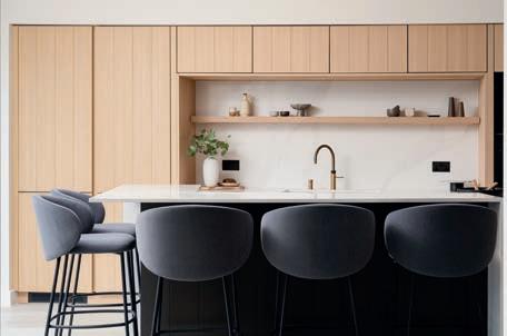 We’re already seeing kitchens take on more roles – workspace, social hub, retreat. That will continue, but with more emphasis on adaptability and atmosphere. Technology will become more invisible, and clients will e pect their spaces to feel grounded without being static. I think the best designs will come from balancing innovation with restraint – using smart features where they help, but never letting the space feel over-engineered. The kitchen will become more human, not less. I also see a continued move toward natural te tures – timber, brushed metals, tactile ceramics –and a deeper focus on emotional comfort. People want spaces that support their lives, not overwhelm them with gimmickry.