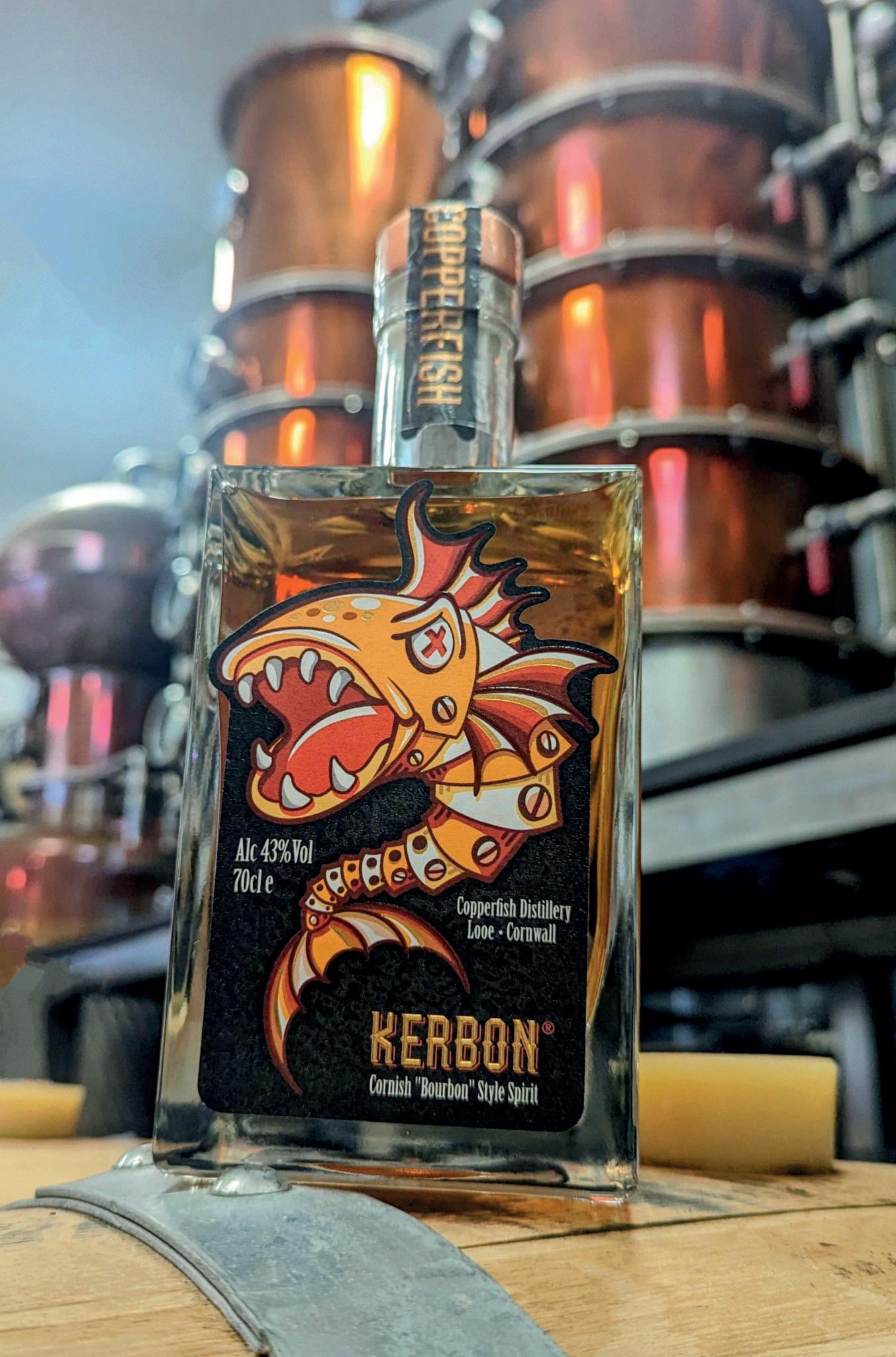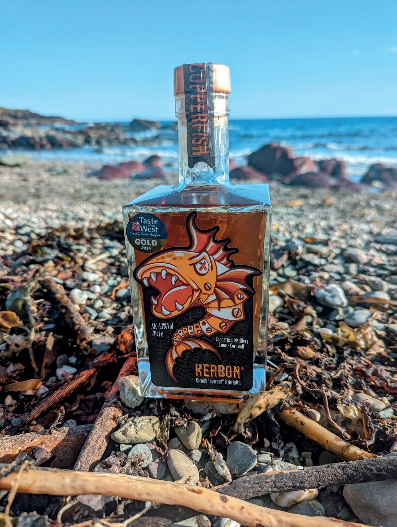 in oak barrels to create Kerbon®.” Made right here in Cornwall, it seemed only natural to the team to combine Bourbon with Kernow to create the unique name, and once trademarked and sealed with a label fit to join the other stunning designs in the Copperfish collection, Kerbon® was entered into the Taste Of The West 2024 awards. It comes as no surprise that the team were delighted to receive yet another gold.