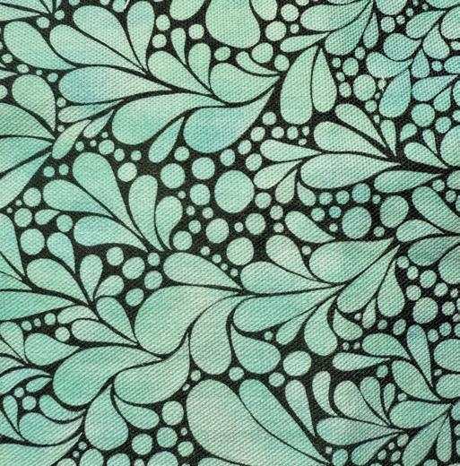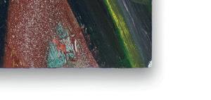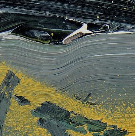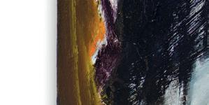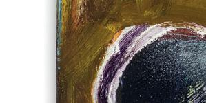 Working in acrylics on canvas, Beth layers paint before paring it back to a visual essence. “I build them up, layer after layer. I start with putting a lot of things on the canvas… and then it’s a process of editing out until the bare minimum is left.” Her compositions are meditative in both form and intent. “The simplest paintings can have the strongest impact. I’m curious to play with composition, with the intention of holding