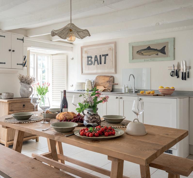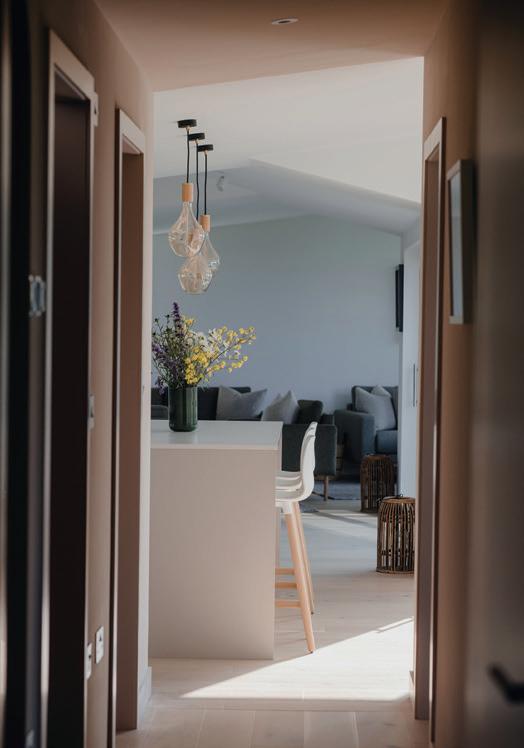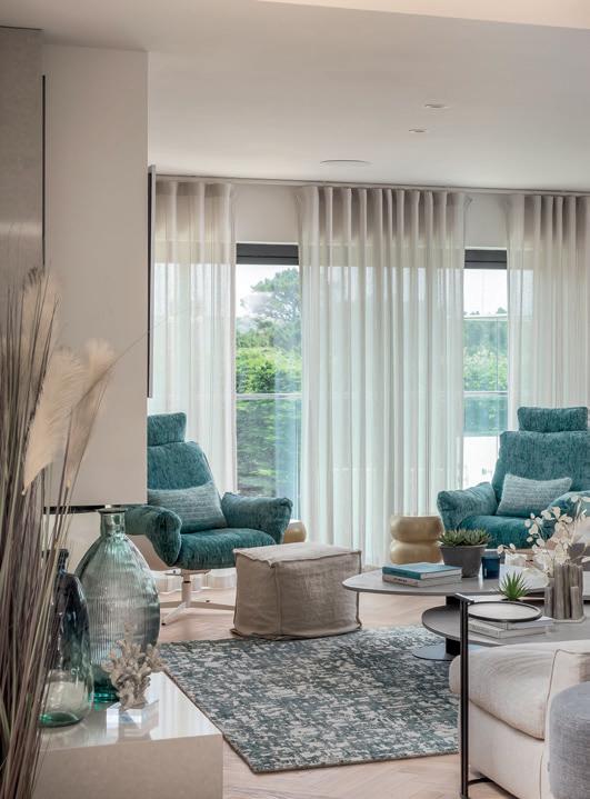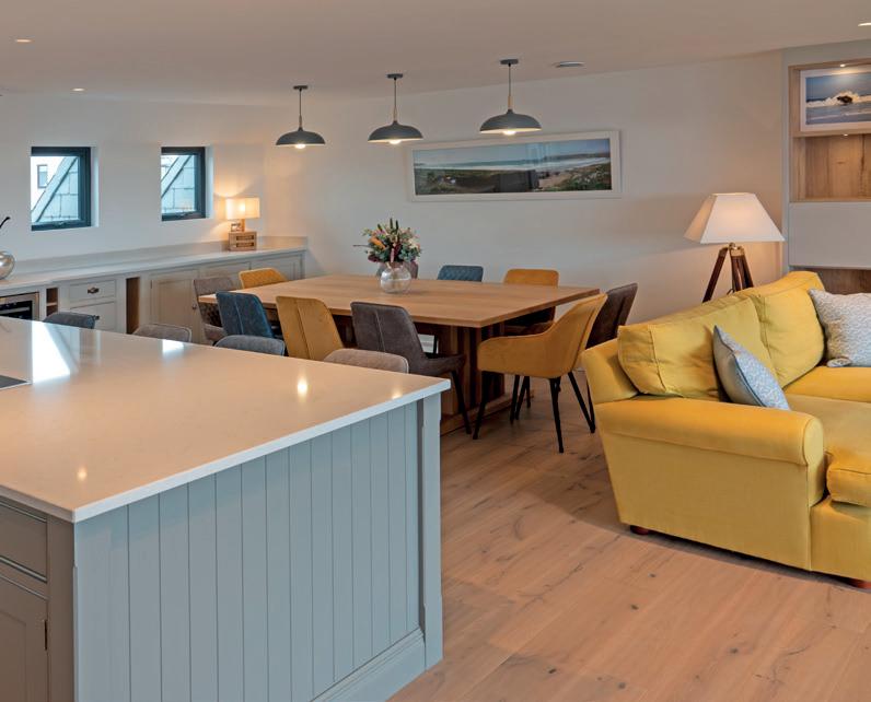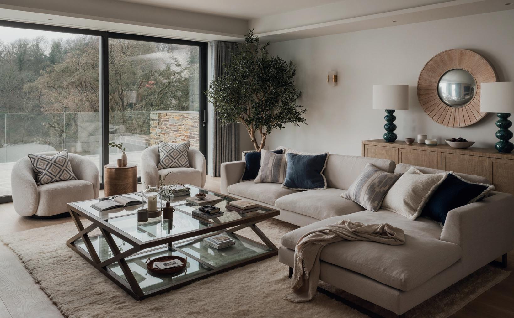 to completion. South West-based artisans shaped much of the interior from the soft furnishings crafted in Devon, to the bespoke joinery and bathrooms. Even the artworks and lighting were regionally sourced, rooting the home in its Cornish context while elevating it beyond the familiar.