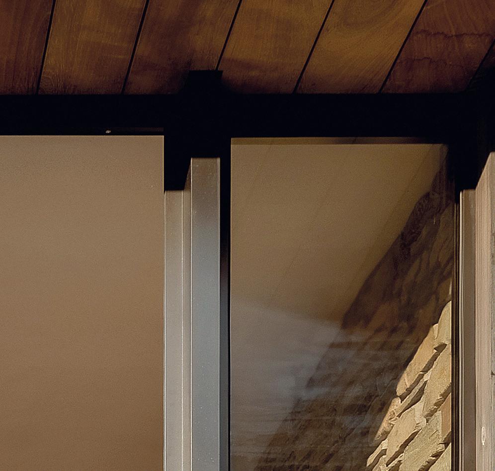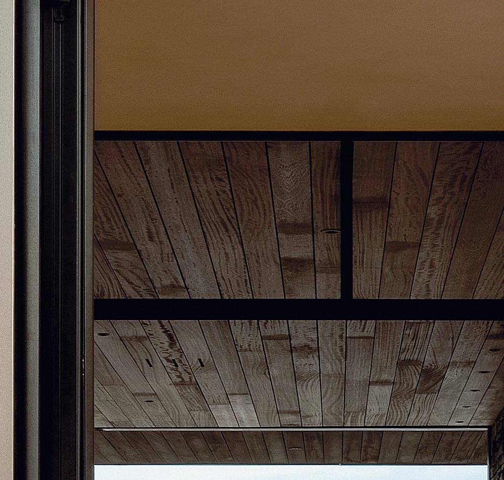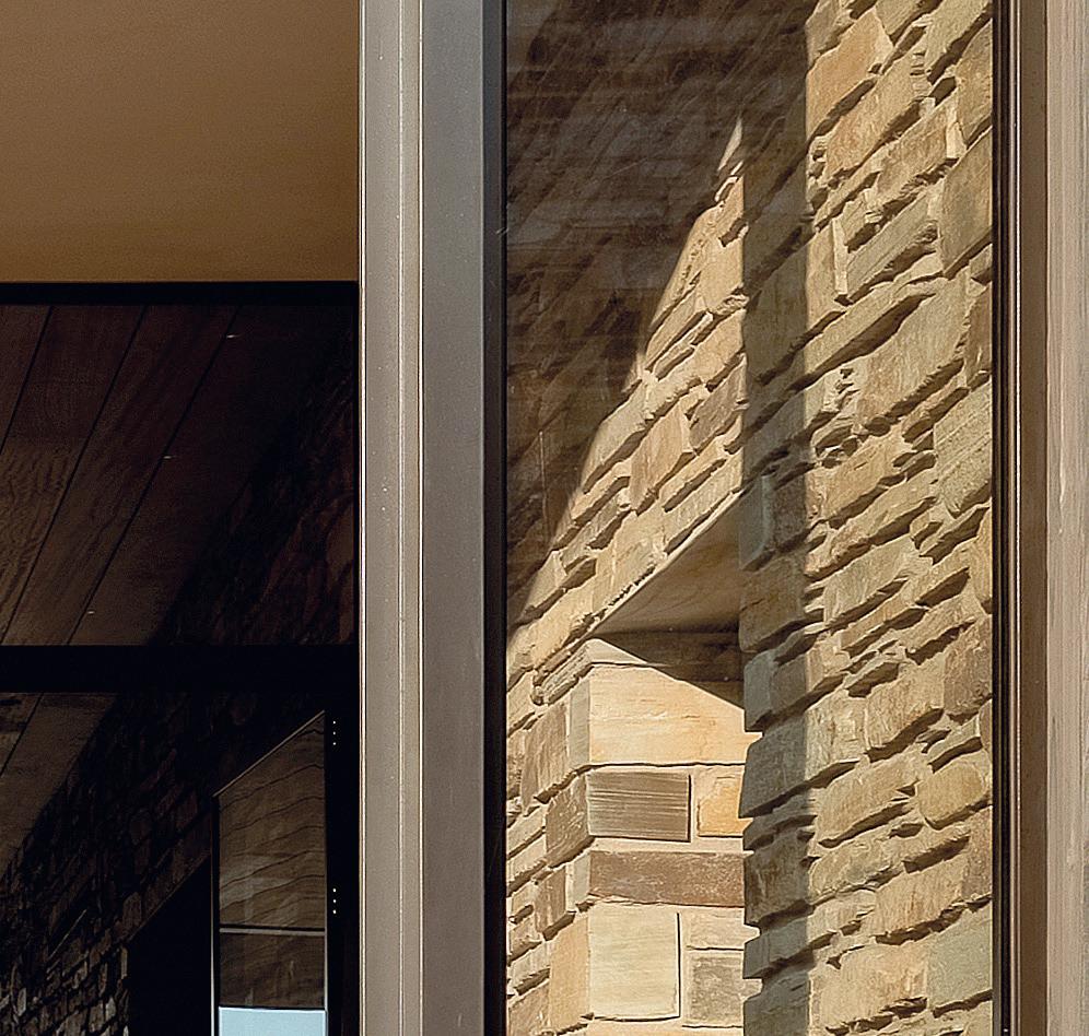 of the home’s design. The stair forms a continuous sculptural line, its rhythm complementing the natural textures of the surrounding materials and the panoramic views beyond.