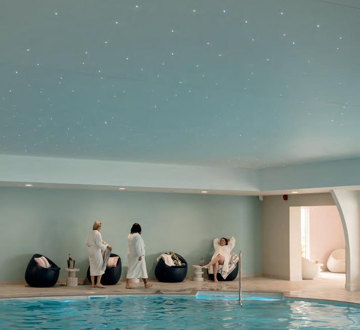 Conceived as a twentyfirst-century retreat, it is where contemporary aspirations are made manifest. Boasting 96 modern, light-filled rooms, each thoughtfully designed, much is made of its Cornish setting, from the deep, sumptuous beds draped in crisp white linen to the invigorating power showers. Every detail is tailored to provide the ultimate in comfort and relaxation. For those seeking something extra special, four luxury spa garden lodges are available, each a peaceful hideaway adorned in soft, coastal-inspired hues, perfect for unwinding in style. Family