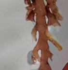 the mind and the eye on the move. The lines she makes are typically agile and animated; they swirl and flow, injecting life into paint. If her destination was unknown at the outset of that walk, the direction became clear as abstract arrangements of lines and colours assumed an aquatic identity, almost for convenience. They branched into a network of skeletal fringes where knots of colour blossomed. Almost intuitively, Bealing arrived at coral imagery, a maritime ecosystem thriving with life-forms and peppered with the occasional bone and scatterings of teeth.