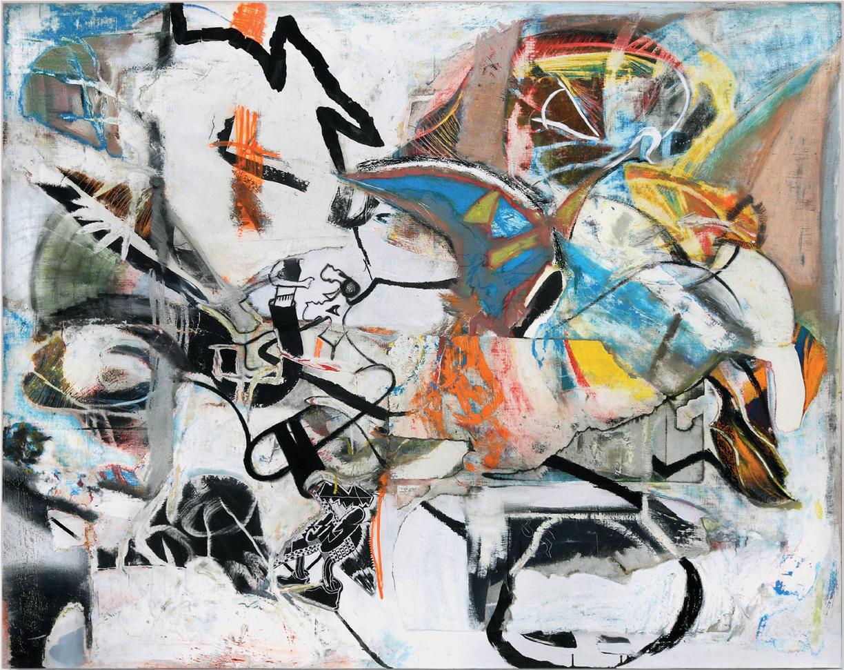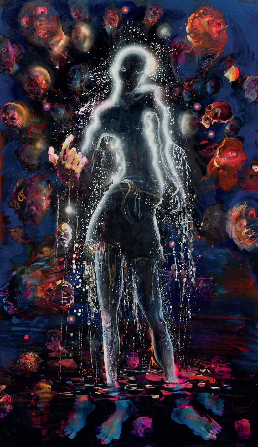 ‘Again They Come’, 2021, ink, oil and spray paint on linen, 300 x 175cm