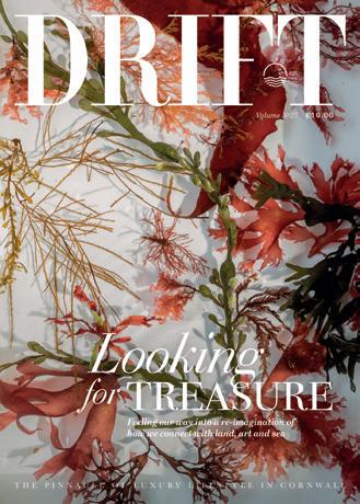 introduces us to luxury coastal interiors inspired by fresh Cornish surroundings brought inside. Fresh flavours carefully crafted by Firebrand Brewing Co. (79) lie in wait to tantalise and surprise, while other tastes tempt at the hands of Chef Scott Williams (95). Pix Ashworth’s body and beauty brand land&water (102) was born from a love of the outdoors, where earth, ocean, lakes and mountains instil a tranquillity amidst the invigoration that being immersed brings. Martin Holman delves into the process of Nicola Bealing (111), exploring emotions felt, memories left behind and marks made in more ways than one. Whichever your perspective and wherever your horizon lies, there is treasure to be found if only you’re determined enough to find it; let DRIFT be your companion on a journey of discovery.