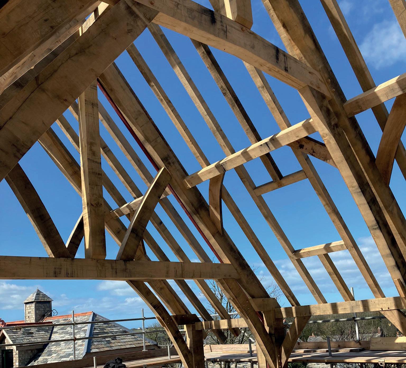 Some 90% of the raw material used by Post & Beam is oak, sourced from the sustainably managed forests of northern France. “French commercial oak forests are so well managed and have been for more than 300 years,” says Tom. “In partnership with the forestry management in France, we replant the equivalent of all the trees that we use in our projects.” Timber is a fantastic building material as it stores C02 for the life of the building. However, says Tom: “We also feel that it is our responsibility to encourage and promote non-commercial rewilding and native woodland creation here in Cornwall. We do it because we recognise the long-lasting effects of re-wilding, and the importance of carbon offsetting in securing a stable, green environment for future generations.”
