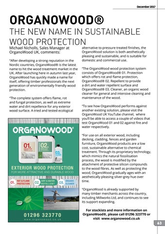 THE NEW NAME IN SUSTAINABLE WOOD PROTECTION Michael Nicholls, Sales Manager at OrganoWood UK, comments: