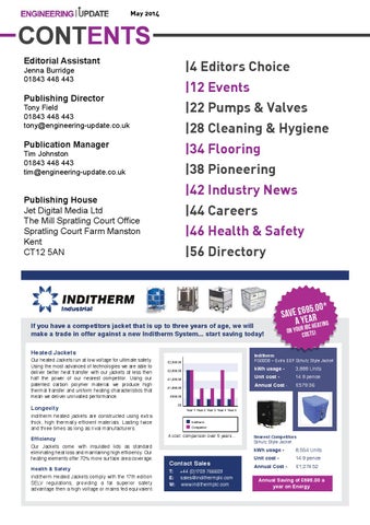 |4 Editors Choice |12 Events |22 Pumps & Valves |28 Cleaning & Hygiene |34 Flooring |38 Pioneering |42 Industry News |44 Careers |46 Health & Safety |56 Directory