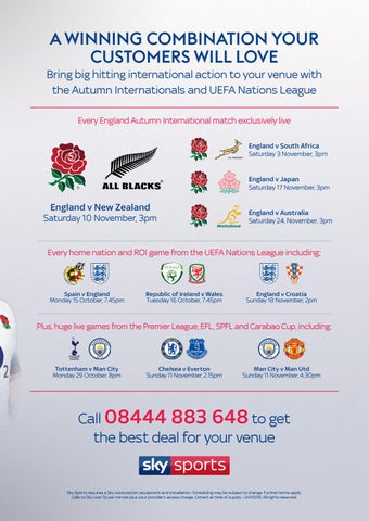a winning combination your customers will love Bring big hitting international action to your venue with the Autumn Internationals and UEFA Nations League Every England Autumn International match exclusively live England v South Africa Saturday 3 November, 3pm