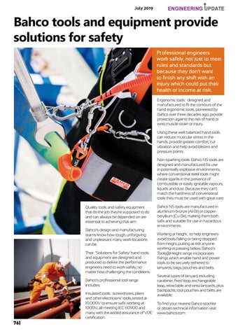 Bahco NS tools are manufactured in aluminum-bronze (Al-Br) or copperberyllium (Cu-Be), making them both safe and suitable for use in hazardous environments. Working at height: to help engineers avoid tools falling or being dropped from height, putting at risk anyone working or passing below, Bahco’s Tools@Height range incorporates fixings which enable hand and power tools to be securely tethered to lanyards, bags, pouches and belts. Several types of lanyard, including carabiner, fixed loop, exchangeable loop, retractable and wrist lanyards, plus backpacks, tool pouches and belts are available. To find your nearest Bahco stockist or obtain technical information visit: www.bahco.com