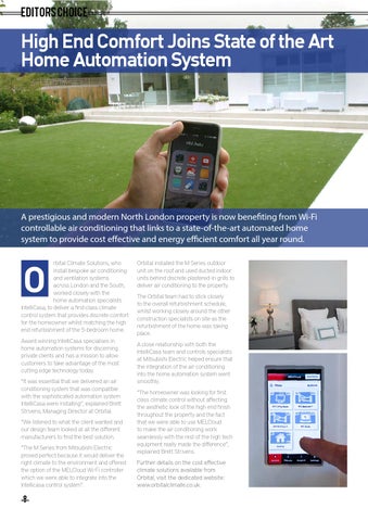rbital Climate Solutions, who install bespoke air conditioning and ventilation systems across London and the South, worked closely with the home automation specialists IntelliCasa, to deliver a first-class climate control system that provides discrete comfort for the homeowner whilst matching the high end refurbishment of the 5-bedroom home. Award winning IntelliCasa specialises in home automation systems for discerning private clients and has a mission to allow customers to take advantage of the most cutting edge technology today. “It was essential that we delivered an air conditioning system that was compatible with the sophisticated automation system IntelliCasa were installing”, explained Brett Strivens, Managing Director at Orbital. “We listened to what the client wanted and our design team looked at all the different manufacturers to find the best solution. “The M Series from Mitsubishi Electric proved perfect because it would deliver the right climate to the environment and offered the option of the MELCloud Wi-Fi controller which we were able to integrate into the Intellicasa control system”.