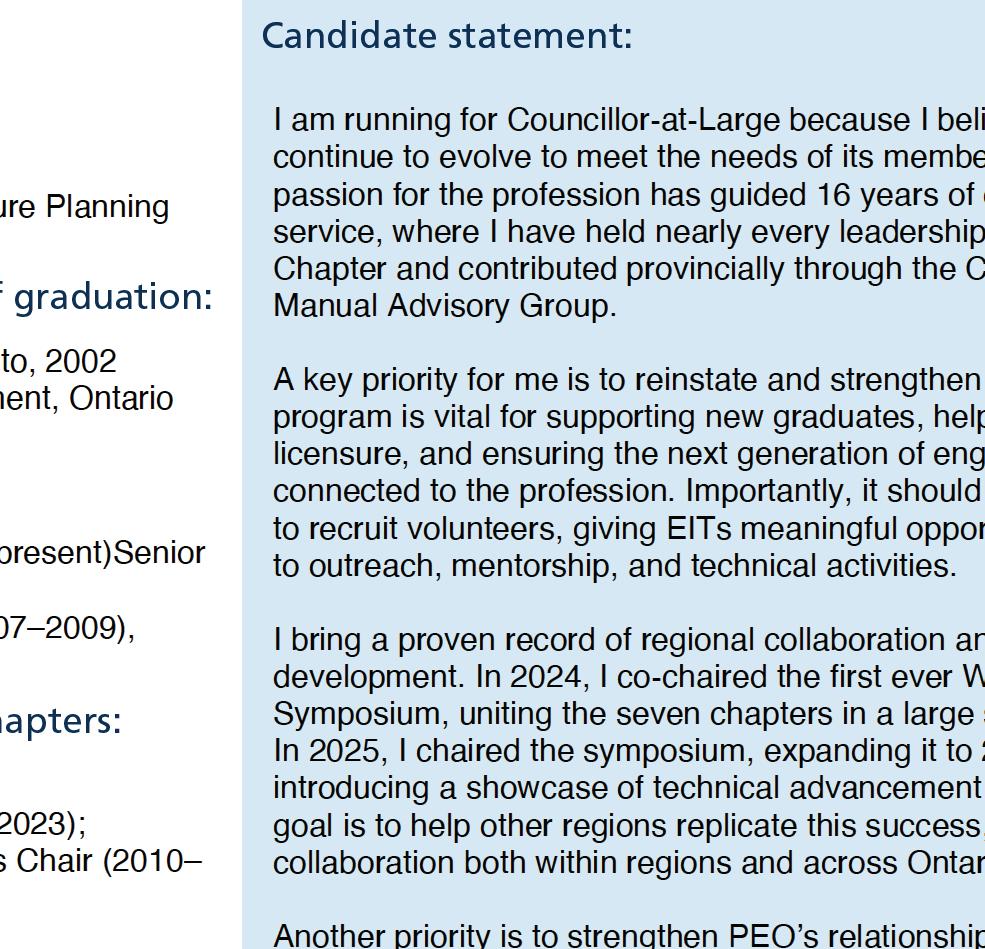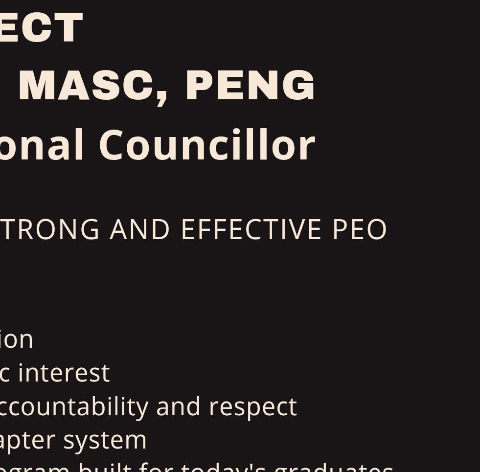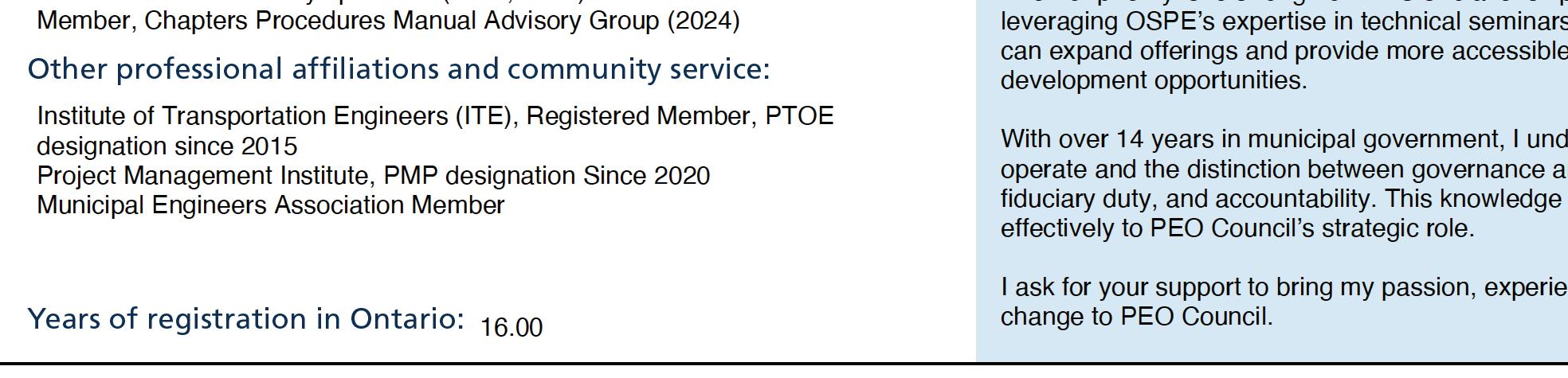With your support, I hope to continue contributing to a stronger, more inclusive, and forward-looking engineering profession in Ontario.