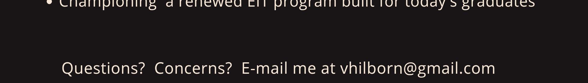 I will continue to advocate for bringing the EIT program back as soon as possible. Missing the EIT program is like missing an important member of the family. Council has unanimously voted to reinstate it, and it now rests with the Attorney General, as it requires a change to the Act.