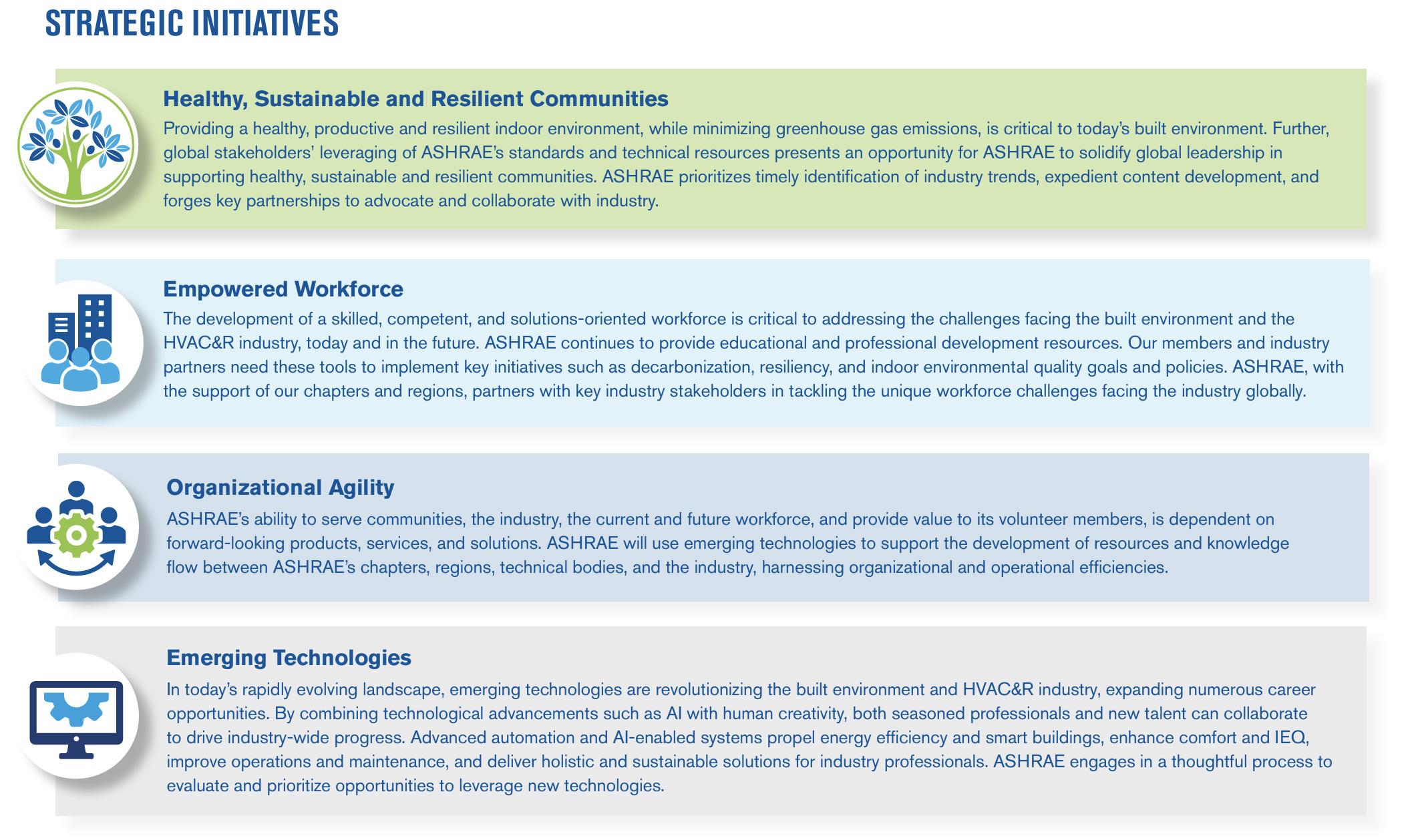 As ASHRAE and our built environment industry changes, our Society’s Strategic Plan evolves to meet the demands of professionals and firms. As part of this evolution, ASHRAE is providing a preview of the strategic plan at www.ashrae.org/about/strategic-plan.