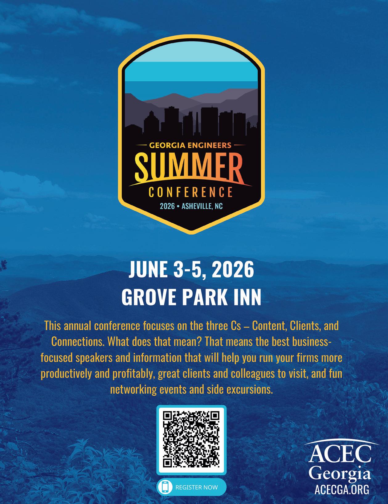 Engineering Georgia 2025 is published bi-monthly by the American Council of Engineering Companies of Georgia (ACEC Georgia) and its partner associations ASCE, ASHE, GEF, GSPE, ITE, ITS, SAME, SEAOG, SMPS and WTS. All rights reserved. Reproduction in whole or part without permission is prohibited.