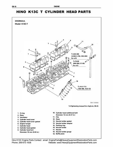 Hino K13C Engine Parts Contact: email EngineParts@HeavyEquipmentRestorationParts.com Phone: 269 673 1638 Website: www.HeavyEquipmentRestorationParts.com