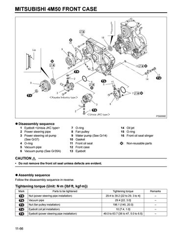 Disassembly sequence 1 Eyebolt <Unisia JKC type> 2 Power steering pipe 3 Power steering oil pump (See Gr37) 4 O-ring 5 Vacuum pipe 6 Vacuum pump (See Gr35A)