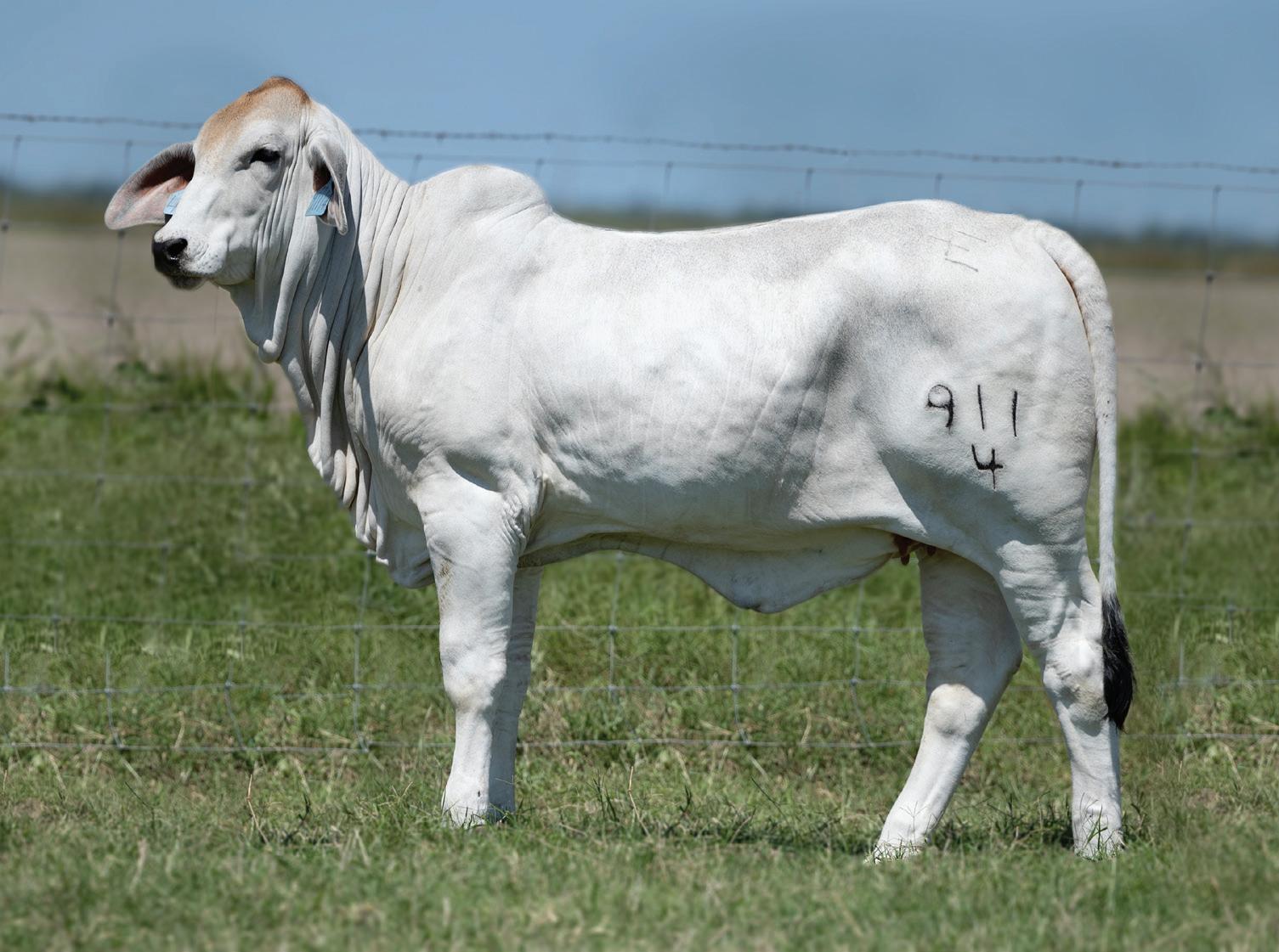 A Smooth Polled beauty! Lot 13 highlights what our original breeding goals set out to accomplish when we crossed two of our foundation herd sire lines, LMC Polled Authority 115/0 (P), daughters over LMC Polled Sambo 45/0 (P) sons. ECC Polled Susie Q 911/4 (P) may not be the biggest one of the bunch but she sure has that feminine look! If there is one thing Authority did was make our original herd of rugged Brahman cows, pretty.