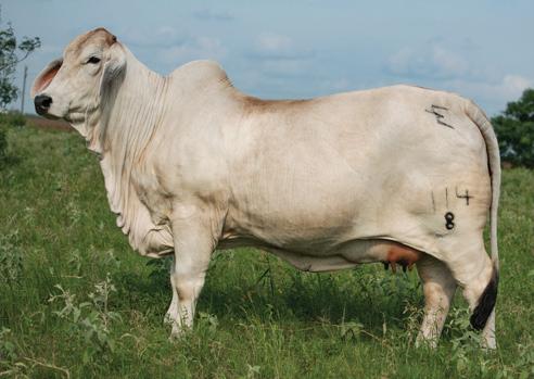 Looking at her from a performance standpoint, she sits among the Top 15% of the breed for Milk. Top 3% of the breed for Calving Ease and Tenderness. Add to this 856/4’s overall eye appeal, ideal teat size and strong Brahman breed character — she will make a great breeding piece.