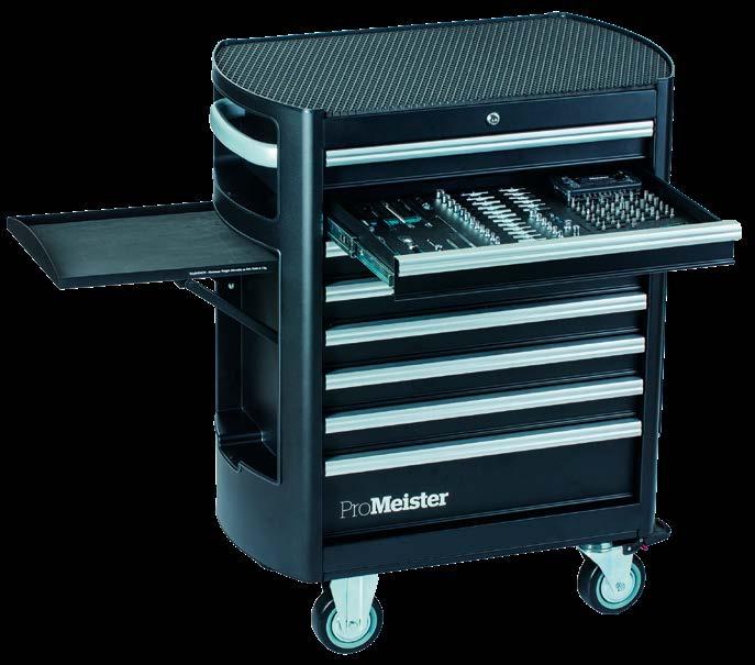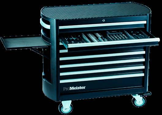 Verktøyvognen er utstyrt med et solid grunnsortiment med verktøy av god kvalitet. Verktøyet ligger i spesialtilpasset skuminnlegg.
