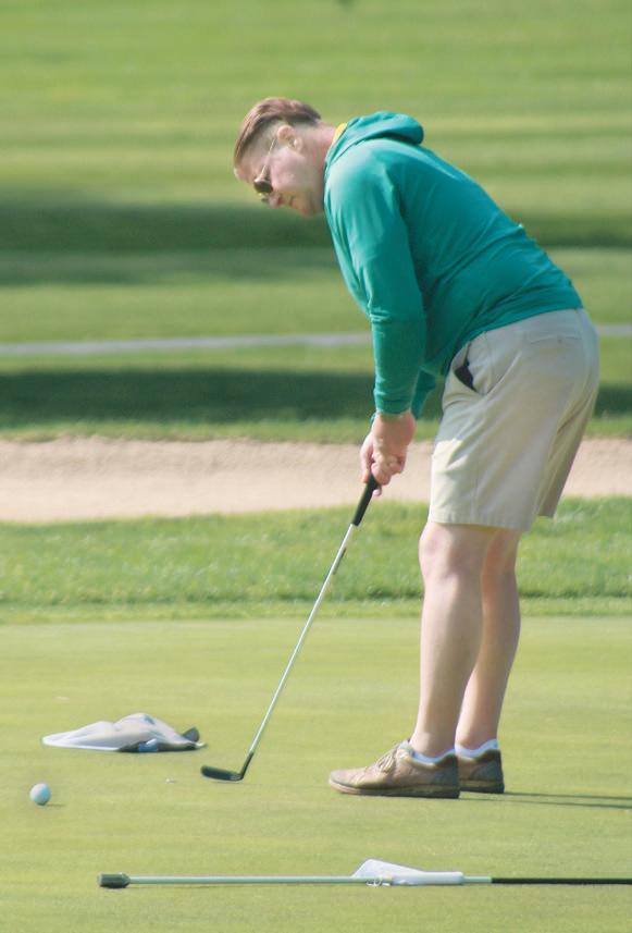 A golfer rolls in a putt during last year’s Lancaster Mennonite benefit golf outing.
