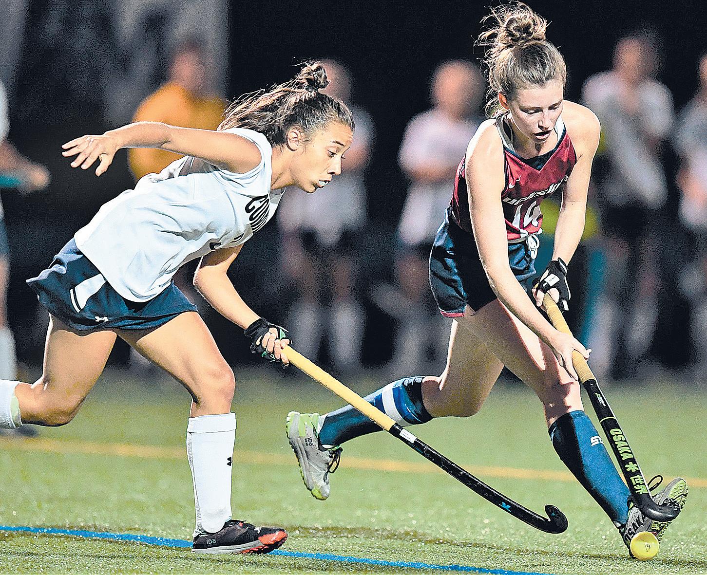Conestoga Valley’s Sophia Livingston drives past Comet defender Liz Bustillo in the Buckskins’ 2-1, Section One loss at Penn Manor on September 26.