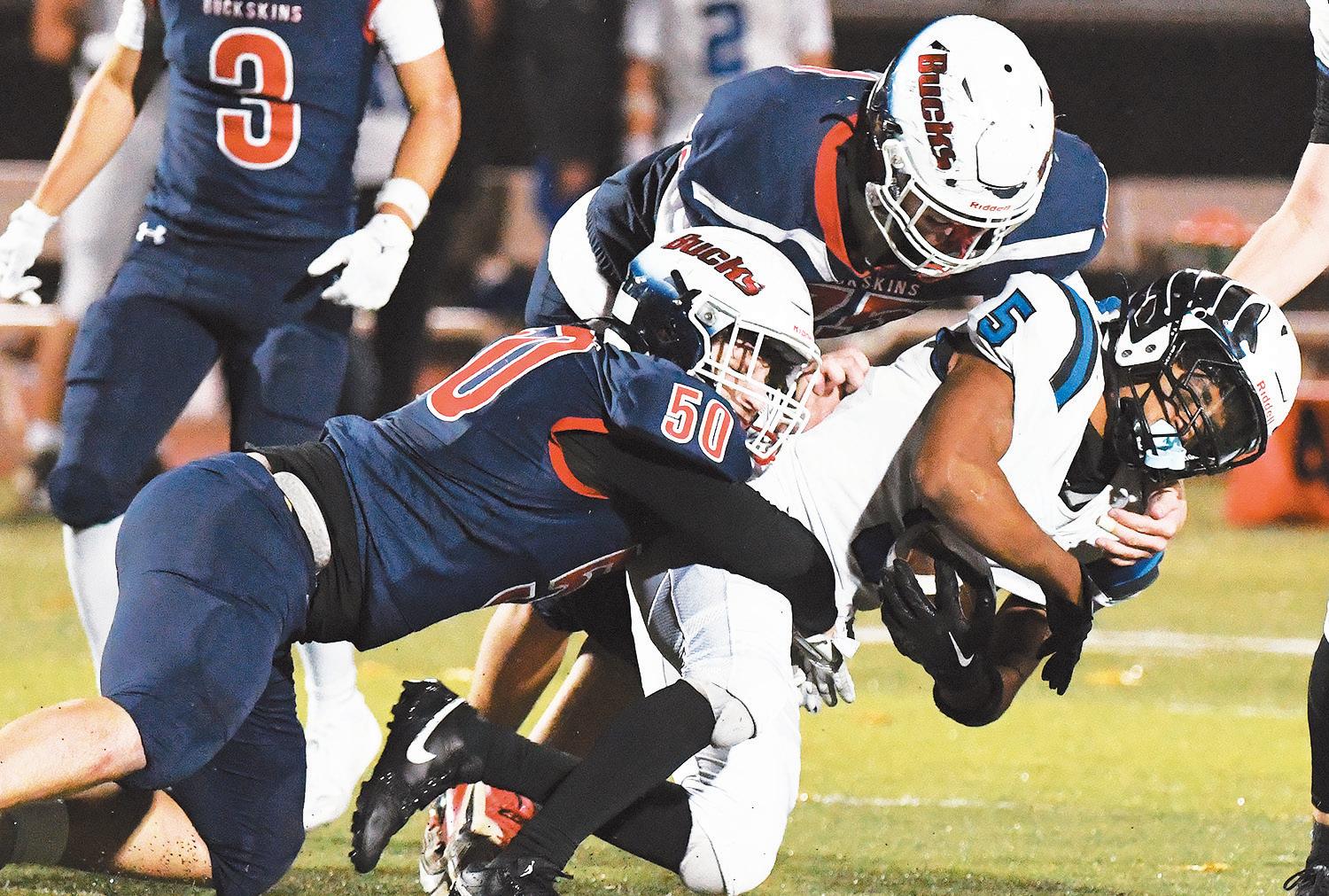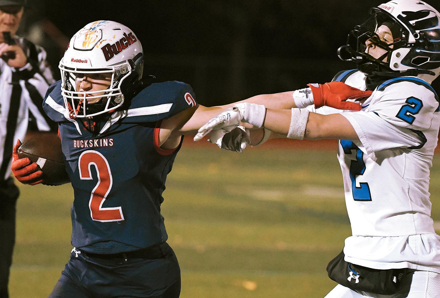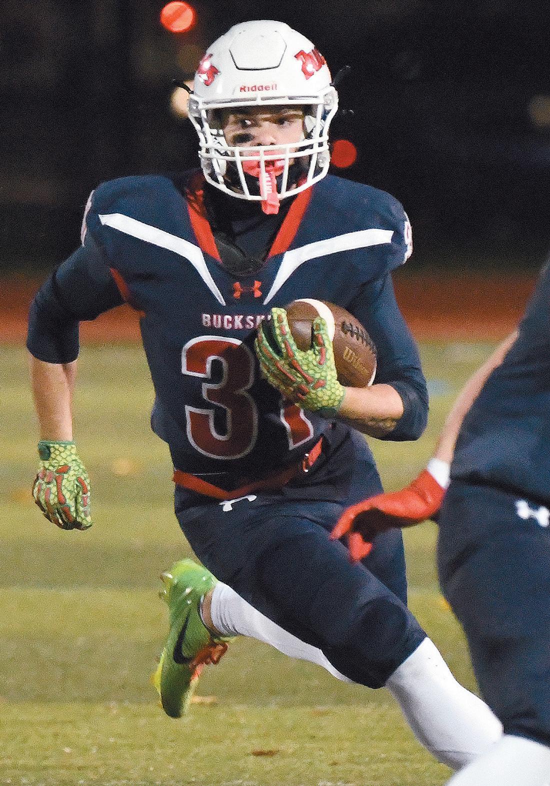 On Friday, November 7, Conestoga Valley’s Gabe Justinlano finds a hole in Exeter’s line in a 41-34 loss during the District Three quarterfinal game in Witmer.